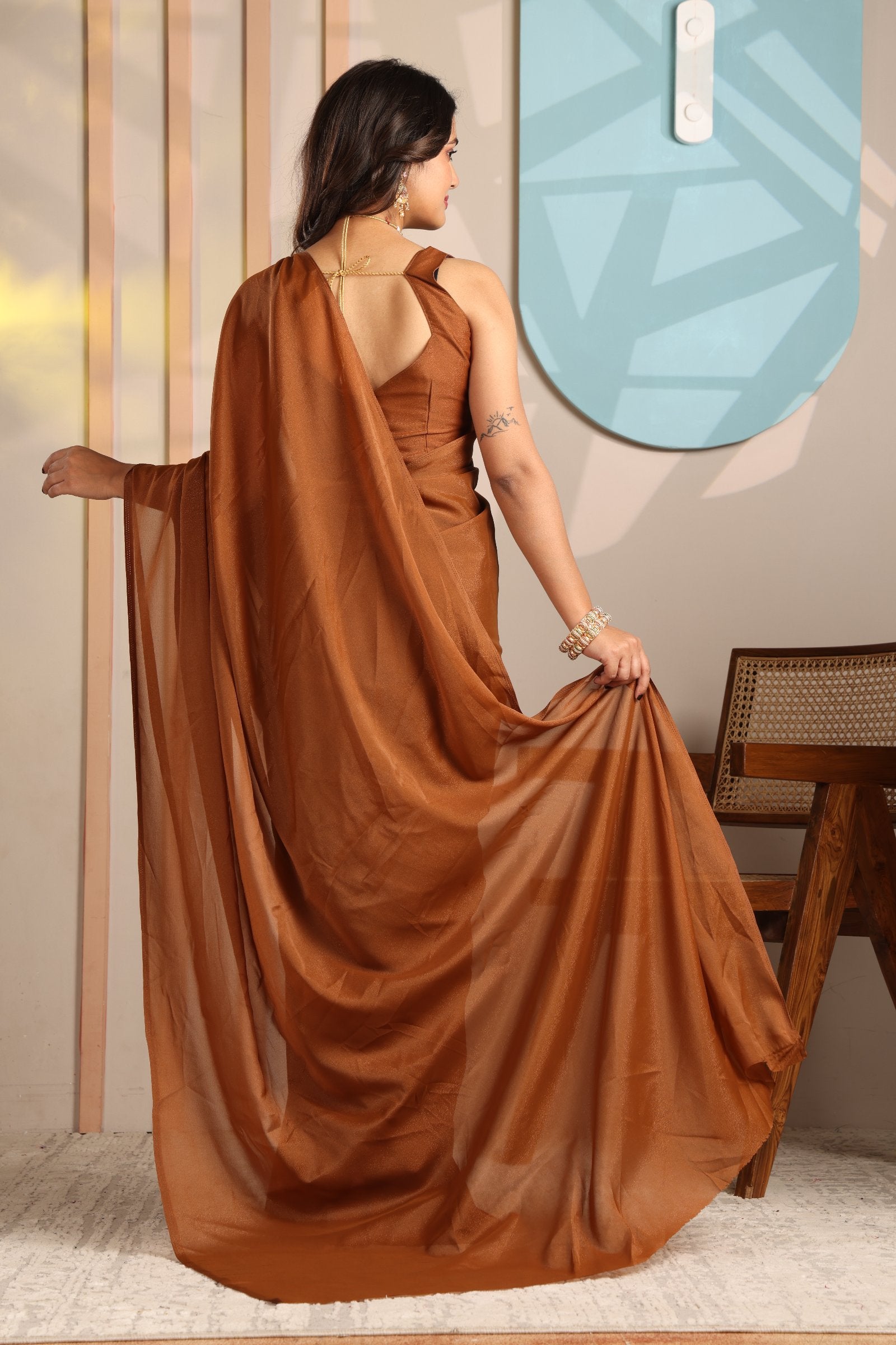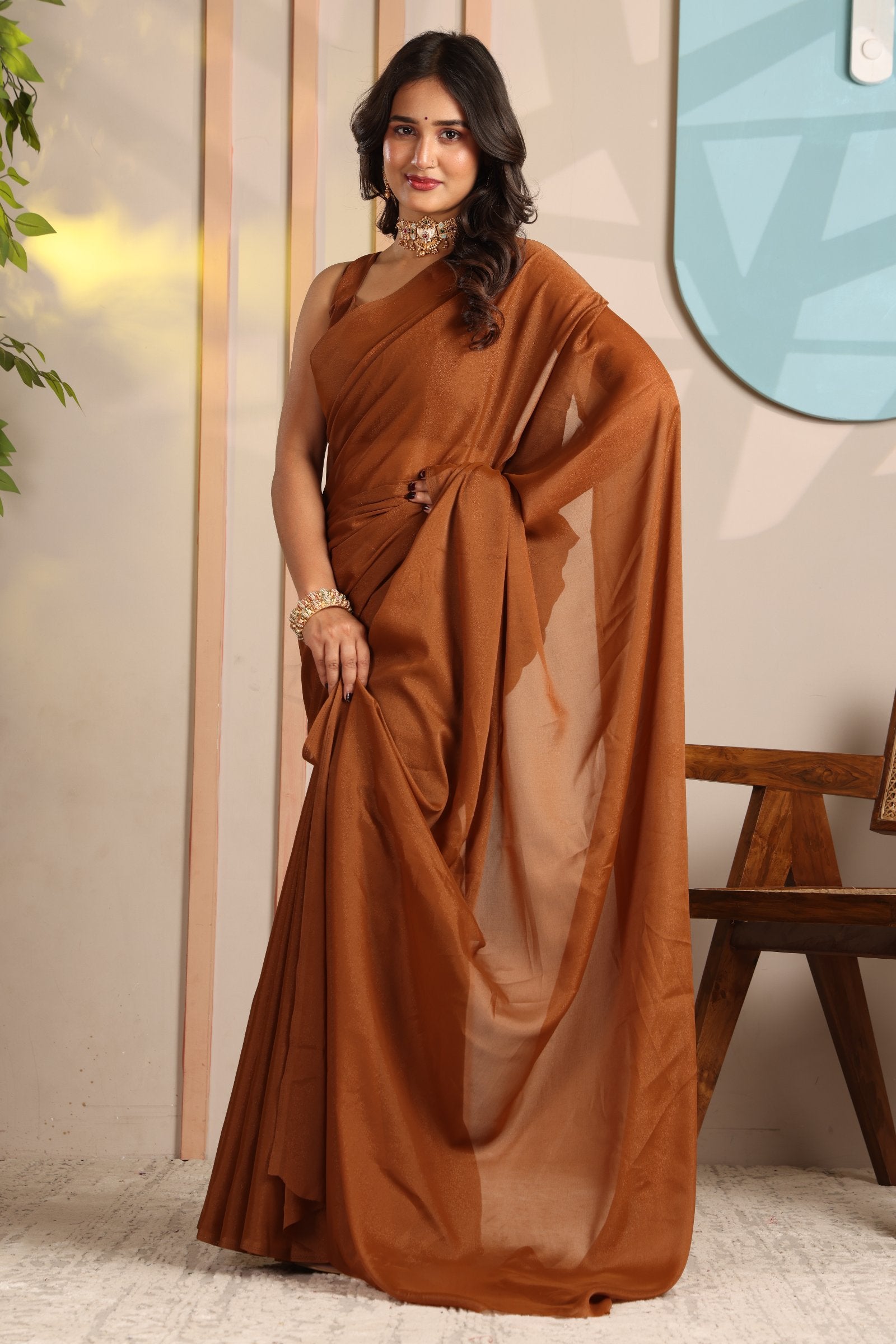 Aradhya — Minimal Brown Plain Star Georgette Saree
